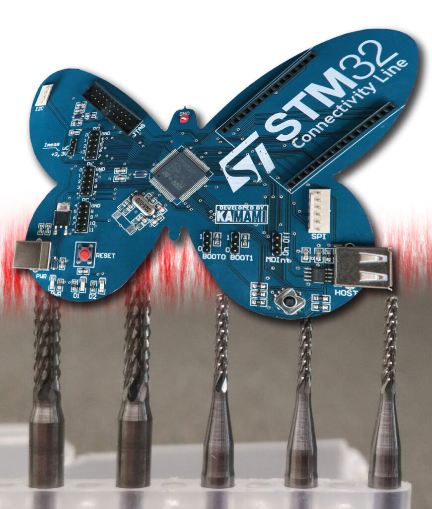 The laminate depanelization process includes breaking V-Cut’s and removing drilled bridges using a dedicated, numerical IPTE spindle milling machine. The process is supported by ionization of air in the working chamber. A dust generated during milling is continuously removed using a high-performance Ruwac vacuum system.