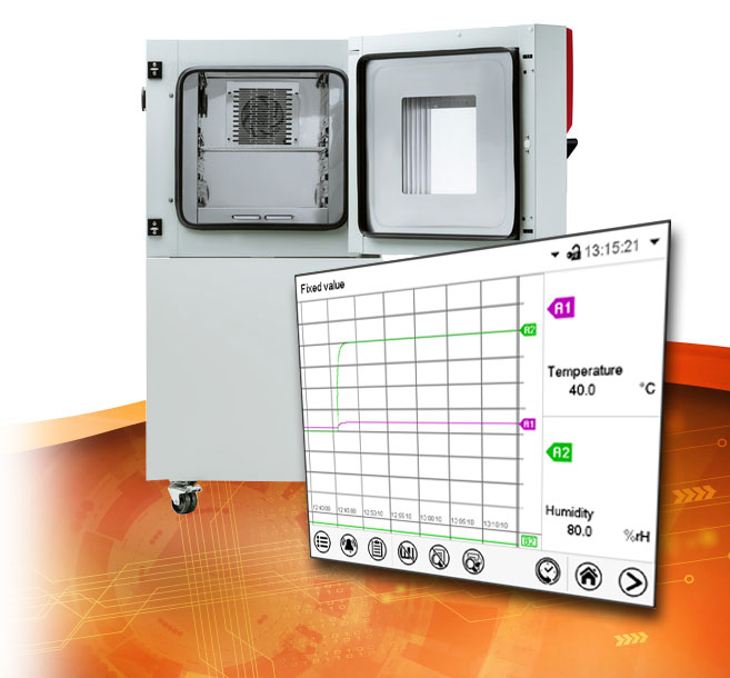 Our environmental laboratory is equipped with a Binder dynamic climate chamber, which allows testing the correct operation of electronic devices in the ambient temperature range from -40oC to +180oC while ensuring high dynamics of changes (heating/cooling) of 5K/min and in the relative humidity range from 10% to 98%. The chamber parameters allow for environmental tests to be performed in accordance with the EN60068 standard.